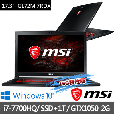 【msi微星】GL72M 7RDX-1003TW 17.3吋 i7-7700HQ-16G-128G+1T-GTX1050-2G-WIN10(16G特仕版) 非常的吸引我的關注。走過路過這裡,