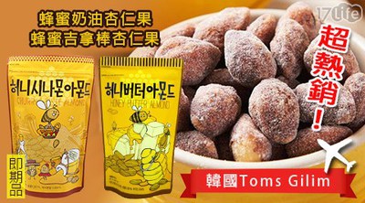 平均最低只要189元起(6包免運)即可享有【韓國Toms Gilim】超熱銷蜂蜜奶油杏仁果/蜂蜜吉拿棒杏仁果:任選1包/10包/15包。