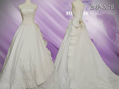 白紗NO.19最大尺寸 胸圍 40腰圍 33 P.S. 禮服是可以改小或放寬的 需依照個人身材尺寸修改後才會合身美麗喔!白紗NO.12最大尺寸 胸圍 39腰圍 31.5P.S. 禮服是可以改小或放寬的...