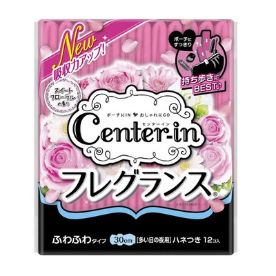 驚喜商品【Center-in】玫瑰花香輕柔蝶翼衛生棉-夜用30cm-12入-12H