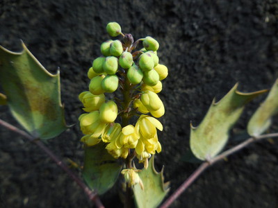 早春開黃色花,總狀花序,頂生,長 10~20 公分,萼片九枚、三列,花瓣六枚,基部有腺體兩枚,雌蕊六枚,雄蕊一枚。漿果卵圓形,長約 0.8 公分,夏季熟時呈紫黑色。