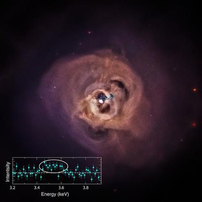 研究者提出,這一譜線可能是惰性中微子衰變所留下的痕跡。惰性中微子是一種理論上的中微子,不參加除引力以外的任何相互作用。有些科學家認為,惰性中微子至少可以部分地解釋暗物質。