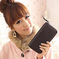 這一款以進口綿羊皮手工編織而成的編織拉鍊長夾,