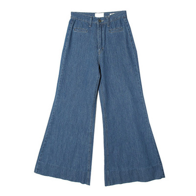 成本價 - 配色拼接不修邊高腰修身牛仔褲