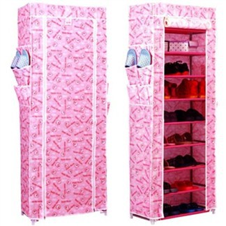 7net,7net購物網,7net雲端超商-TaiCheng高質感附門簾防塵罩十層鞋架-粉紅綿羊