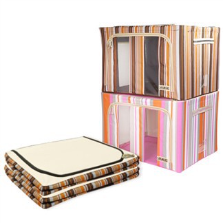 7net購物網超值4入【快樂家】時尚條紋雙開口三視窗鐵架衣物收納箱80L (2色可選)_1
