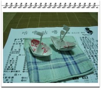 *圖--->我的成果(右:智弘折的,左:寶貝折的)和咕嚕咕嚕的菜單...by寶貝*