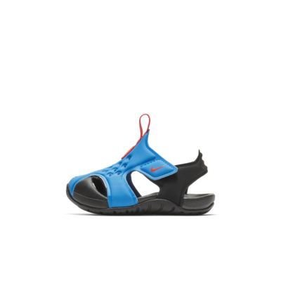 Nike Sunray Protect 2 嬰幼兒涼鞋具有防水鞋面以及柔軟的泡棉避震設計,能隨幼童的小腳靈活伸縮。涼鞋採取好穿脫的雙重魔鬼氈固定帶設計,讓幼童輕易穿上固定,開心玩耍。