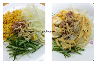 熱烘烘的天氣有時候真的讓人沒胃口連帶著也懶得下廚,懶得面對油煙和瓦斯爐雖然我不是很愛吃生菜沙拉,可以說是沒什麼在碰不過偶爾也想換個口味對於挑食的我,連沙拉的種類也是如此簡單食材:小黃瓜半條玉米罐頭適量...