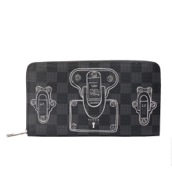 LV N63182 經典棋盤格TRUNKS & LOCK拉鍊長夾(黑X灰)