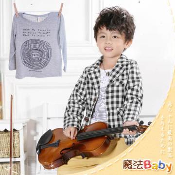 魔法Baby ~韓版潮流DEMI同心圓款純棉長Tee(灰)~童裝~小潮男女童裝~時尚設計童裝~k24166