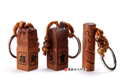 cp值超高的momo購物2【傳家手工印章】頂級招財進寶鑰匙圈印章 原木材質(全手工篆刻六分章-單章-落款章 雅閒章 開運