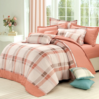 momo購物網-【GOLDEN-TIME】清爽格紋-紅(雙人加大四件式薄被套床包組)