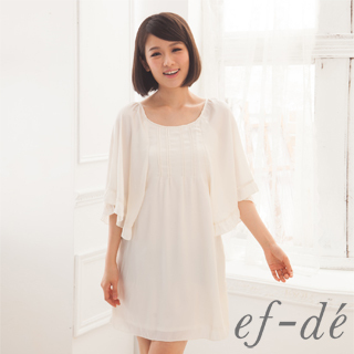 推薦momo流行服飾【ef-de】特殊抓摺寬袖造型洋裝(黑-灰-米白)