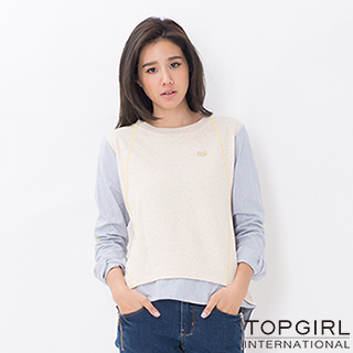 推薦momo流行服飾【TOP GIRL】拼接前短後長圓領T-女(米麻色)