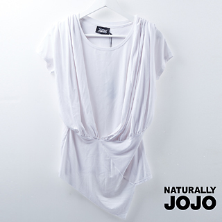 推薦momo流行服飾【NATURALLY JOJO】假二件式繞頸短袖上衣(白色)