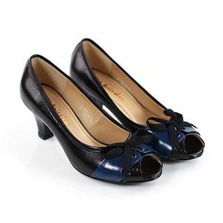 推薦momo熱銷商品【ANNALEE】柔美情懷雙色蝴蝶結低跟魚口鞋(黑色)