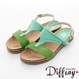 推薦momo熱銷商品【Diffeny】臺灣製造 異材質拼接軟木塞厚底涼鞋(綠)