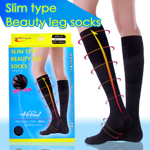 ,含有鍺、鈦、銀三大成分配合,特殊型強壓編織法,包覆整個小腿,不論是長期久站的上班族女孩兒或者是天天走路的學生,都可以穿著,演出美麗曲線的雙腿喔!