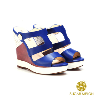 momo,momo購物台,momo購物網>【Sugar Melon】Pretty sport?交叉簍空楔型涼拖鞋(浩瀚藍)
