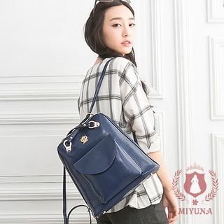 【MIYUNA】首爾時尚FLO全真皮後揹包(時尚藍)