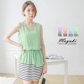 momo,momo購物台,momo購物網>【MAYUKI】雪紡層次橫條縮腰無袖洋裝-S.M