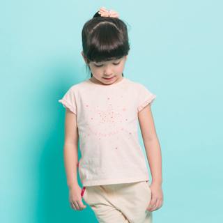 推薦momo流行服飾【minihope】女孩 粉彩星砂剪接連袖上衣(粉紅)