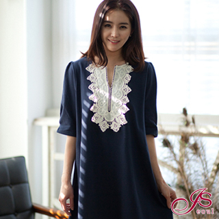 momo,momo購物台,momo購物網>【I-Seoul正韓】9174正韓設計花拚布OL洋裝-現貨(深藍色)