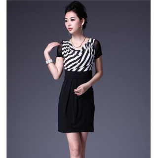 momo,momo購物台,momo購物網>【魅麗女人】高貴性感斜條紋雪紡洋裝(12242)