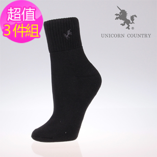 【UNICORN COUNTRY 龍馬】竹炭1/2反折毛巾底運動襪(超值三入)