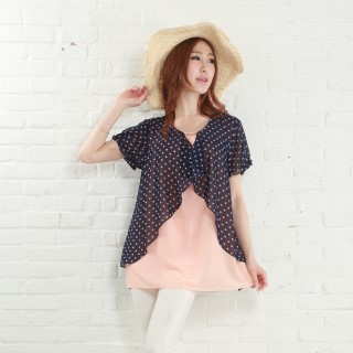 推薦momo流行服飾【AYH】輕盈雪紡百搭款(粉橘搭深藍)