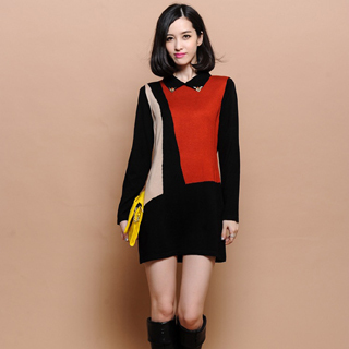 momo購物台,momo購物網:【Jisen】翻領撞色針織洋裝(M-XL)