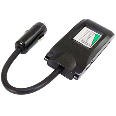 商品訊息描述: 汽車電瓶的電力充足與否攸關汽車啟動以及車內其他電子設施的使用,尤其是臨時無法啟動或出外時因電瓶的電力不足而車子無法啟動,更是令人困擾。最簡易又方便的測試方法就市使用這款新一代電池偵測器+USB充電插孔,可以馬上偵測電瓶的電力以免因電力不足影響車輛的性能或半途故障。外加2.0A電流USB車用電源接頭,適用時下一般的手機、i Pod 、MP3、數位相機或其他3C用品USB充電,讓您出外使用的3c產品不怕因中途沒電。