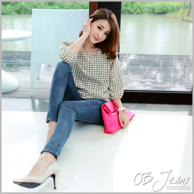 服裝推薦OB嚴選-0213新品 可愛小女人~氣泡圓點洗水刷破嚴選韓版牛仔窄管褲