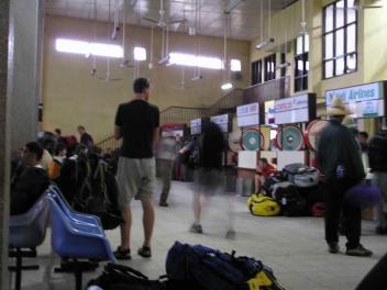 今天登機證沒”先”拿,櫃檯人員請我們在大廳等,等到氣候變好的時候,再準備登機,但是我心知肚明,飛機要起飛到lukha是微乎其為的機會,因為季風的威力我可是明瞭的很。
