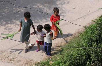 圖片說明:尼泊爾小孩從小就習慣接近大自然,縱使是在加德滿都這樣的首都裡,還是常常可以看見小朋友"貼近"大自然~