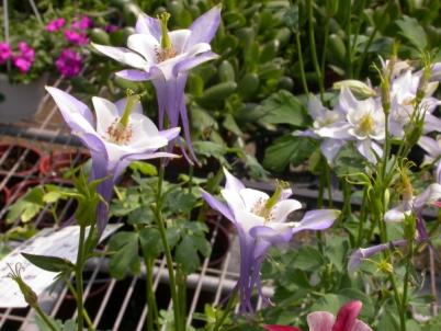 耬斗菜(學名:Aguilegia vulgars): 別名:樓斗菜、漏斗花、駱駝菜、獅子草、聖母的手套。原產地:日本及歐洲國家。毛茛科,一年生草本植物。葉:葉片三出,細看葉片與枝條相接處,又好似奇數羽...