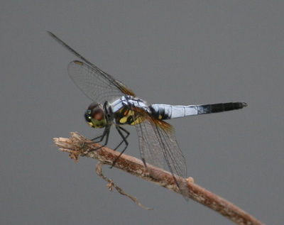 橙斑蜻蜓(學名:Brachydiplax chalybea flavovittata) :蜻蜓科,體長34-38mm。特徵:雄蟲複眼上褐下綠,合胸及翅基背面灰白色,合胸側視具2條黃色的條紋,腹部1-5...