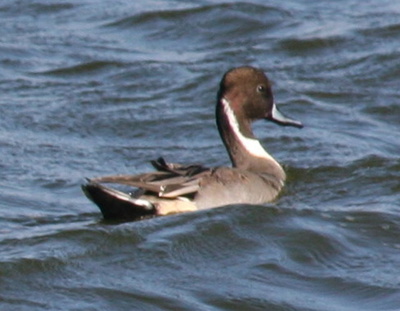 尖尾鴨 (雁鴨科/冬候鳥)學名:Anas acuta。俗名:針尾鴨、長尾鳧、長鬧、拖槍鴨、中鴨。特徵:體長約65cm,雄鳥體側布滿淡褐色與白色交雜的扇貝形橫紋,頭棕褐色,從胸部一直延伸到頸後部的乳白色...