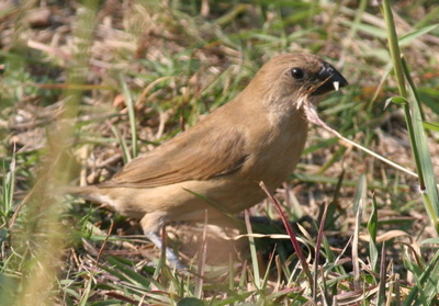 斑文鳥(文鳥科/留鳥) 英文名:Spotted Munia。學名:Lonchura punctulata。俗名:黑嘴筆仔。特徵:比麻雀略小,全身約10公分,褐色。胸腹部顏色灰污,有鱗狀斑紋,嘴鉛灰色。...