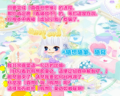【隨想隨筆、隨寫】只要完成「真寬恕思維」的過程,那你肯定會「看破放下」的,等於這是在說,你根本不再被「虛幻小我」欺騙了。