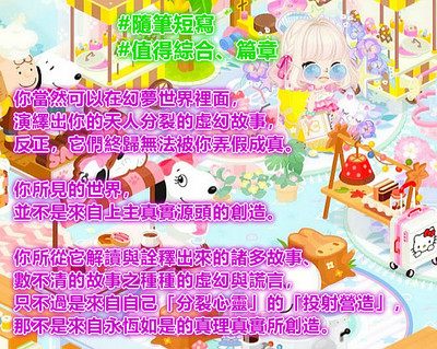 【隨筆短寫】你當然可以在幻夢世界裡面,演繹出你的天人分裂的虛幻故事,反正,它們終歸無法被你弄假成真。