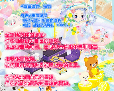 【奇蹟語錄、摘錄】聖靈所教你的卻是:你不可能喪失自己的靈魂,世上也無利可圖,因世界本身根本無利可言。