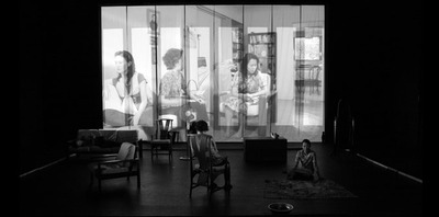 大姊則在另一旁憑空扮作幫忙按摩。另外,第三段燈光只映照站起來的三人的頭顱,兩女兒在沒有「身體」的情況下,扮演十歲的小孩,正如導演在演後談說,這確