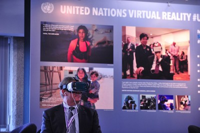 於倫敦出席「支持叙利亞及該地區」會議人士正觀賞VR360影片《Clouds Over Sidra》| © Rob Thom/Crown Copyright.