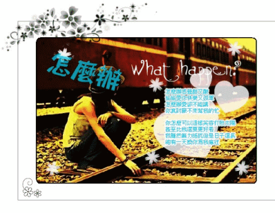沒惹笑容, 我變得好冷漠, 這樣的我, 誰喜歡 ? 自我厭惡` 是嗄 = ︿= 其實很想笑, 但牽不動的嘴角, 無奈, 總是忍不住落淚` 從什麼時候開始, 我的心...