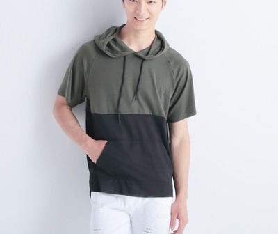 【網路人氣商品top10】美式上下拼色連帽短袖棉T (綠黑) 29108 限時活動折扣