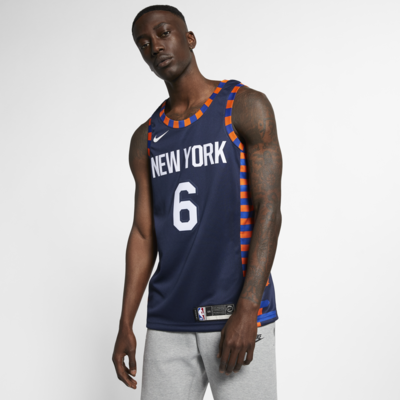 這款 New York Knicks City Edition Swingman Nike NBA Connected Jersey 設計靈感源自球員在場上穿著的球衣,完美結合球隊的傳統和現代形象。球衣正面、領口和袖孔細節呼應了球隊原名為「Knickerbocker」的年代,而側邊則可看到現代紐約市的天際線。