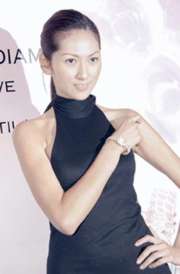 蘋果日報 2004-02-06 名模李嘉慧及歐陽妙芝等昨日往中環示範The Royal Diamond腕表系列,其中焦點落在由李嘉慧示範的一隻鑲有每粒逾半卡,共四十粒鑽石、及共五卡Pink Di...