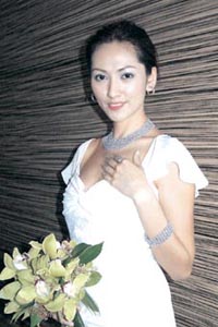 明報 2004-04-18 李嘉慧昨日與兩位外籍模特兒在洲際酒店「Weddings with Style」婚宴概念中,穿上Valentino婚紗、晚裝及Van Cleef & Arpels的Le...